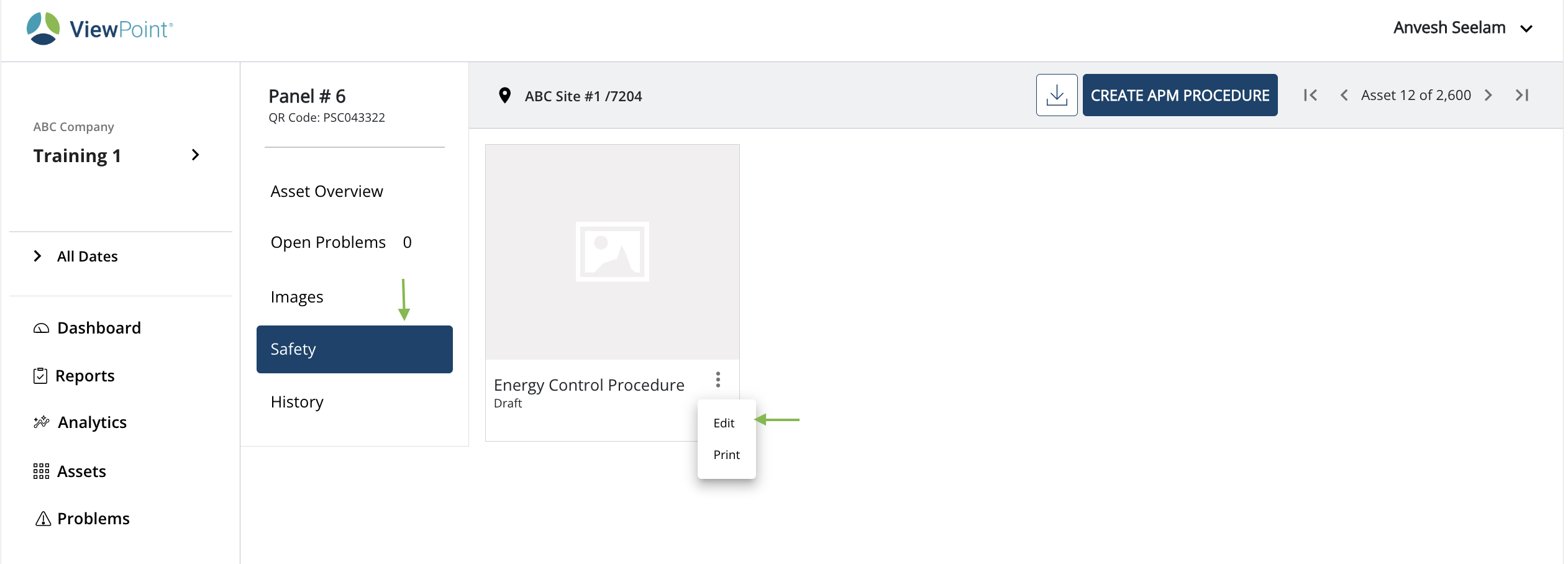 - Navigate to the safety screen and select the 'Edit' option from the procedure's actions.