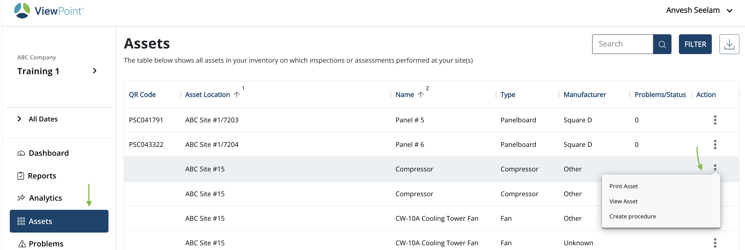 - A list of assets will be displayed, then search for the asset you want to create the procedure for and select actions.
