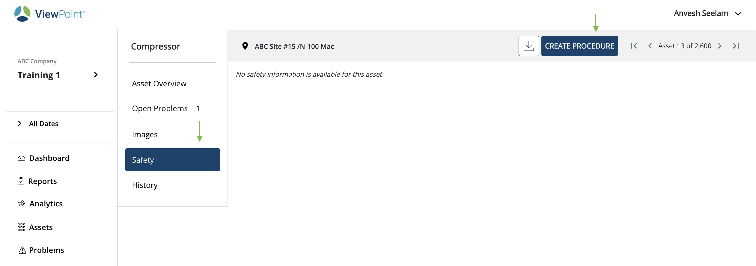 - Navigate to the safety screen and click on the Create procedure button.